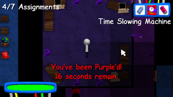 - After Hours: Most characters, save for Purply and Lime, are disabled, and Purply gets mad at you if he sees you at all.